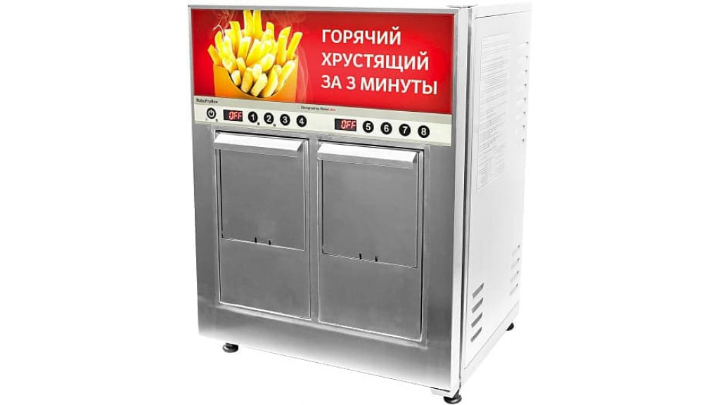 Настольный фритюрный автомат; 570 × 550 × 830 мм; две корзины; имеет по 4 программы приготовления продуктов на каждую корзину; жиросборник; производительность: 24 кг/ч; вместимость фритюра: 13 л; разовая загрузка в две корзины: 1 кг. Принцип действия: продукт грузят в лоток, запускают рабочий цикл. По окончании цикла продукт автоматически выгружается в раздаточную ёмкость. Благодаря многоступенчатой системе очистки воздуха, оборудование не нуждается в вытяжке.