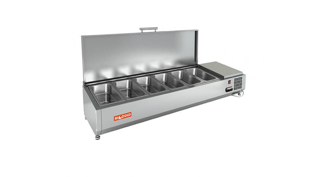 Витрина Hicold VRTU 1390 применяется для предприятий общественного питания и торговли для демонстрации, охлаждения и кратковременного хранения салатов, гарниров, закусок и других готовых блюд.