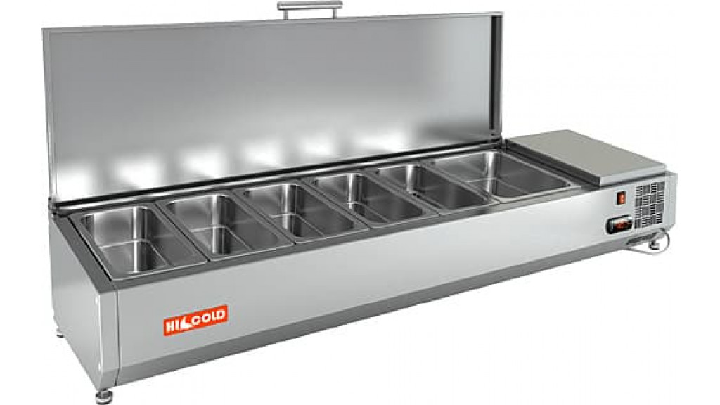 Витрина холодильная Hicold VRTU 1485 к PZE3 применяется для демонстрации и охлаждения готовых блюд на предприятиях общественного питания. Модель оснащена крышкой и специальным креплением для стола, предназначенная для использования совместно с холодильным столом PZE3-111/GN. Корпус выполнен из нержавеющей стали.