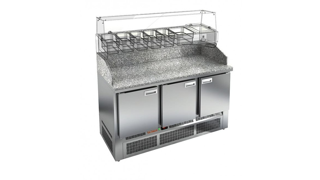 1485 × 700 × 1050 мм; PZE3-111GN камень; стол для пиццы охлаждающий; температура от +2...+10 °С, три двери, с бортом с 3х сторон