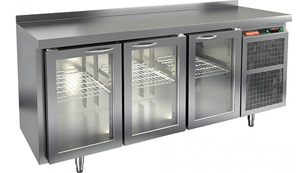 Температурный режим: +2...+10 C°; три стеклянные двери; боковое расположение агрегата; возможность использования гастроемкостей вместо полок; динамическое охлаждение; 220 В; 0,47 кВт; 1835 × 700 × 850 мм; 505 л; 119 кг.
