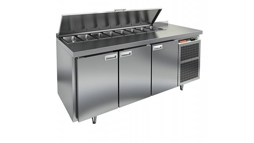 Стол для салатов Hicold SL1-111GN с крышкой применяется на предприятиях общественного питания и торговли для раскатки теста и обработки ингредиентов для приготовления блюд, а также для охлаждение и кратковременного хранения продуктов и напитков.