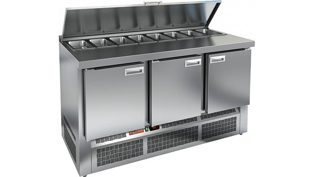 Стол для салатов Hicold SLE1-111GN с крышкой применяется для обработки ингредиентов, используемых для приготовления пиццы, салатов и других блюд, а также для охлаждения и кратковременного хранения продуктов и напитков. Модель используется на предприятиях общественного питания.