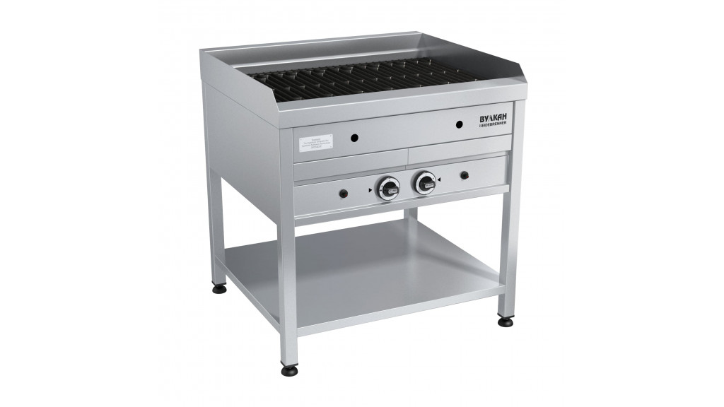 Рифлёная чугунная поверхность; две зоны нагрева; напольный; газ-контроль; пьезорозжиг; баллонный/сетевой газ; газовая мощность: 24,2 кВт; 800 × 700 × 850 мм; 120 кг.