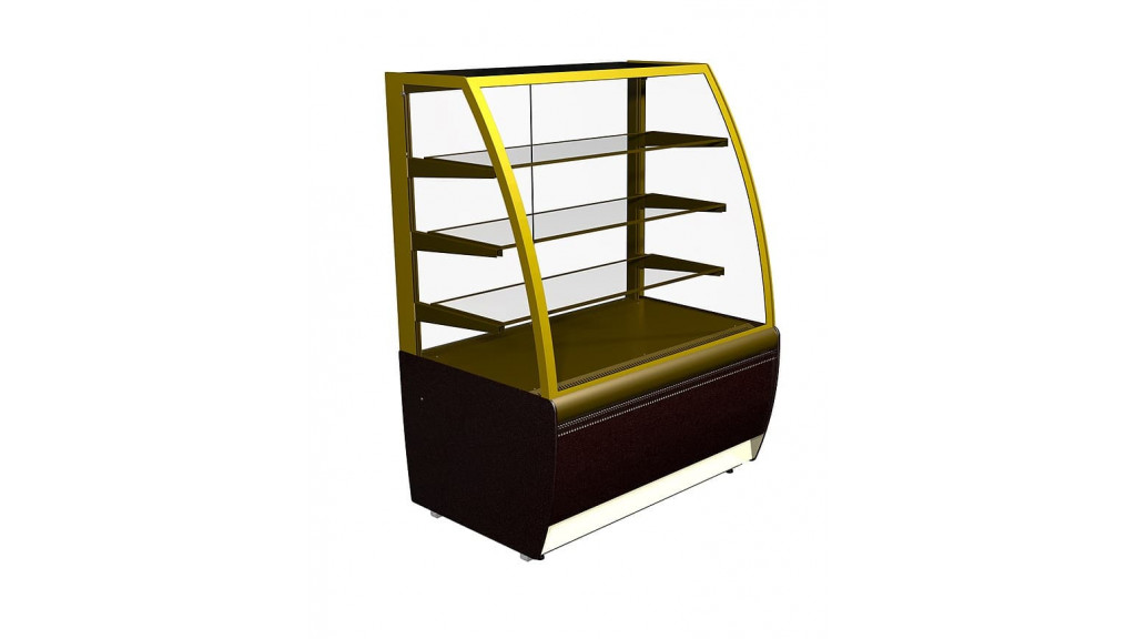 900 × 700 × 1280 мм; t режим: 0 ... +7 С; витрина кондитерская со встроенным агрегатом; гнутое стекло; стеклопакет; 3 стеклянные полки с подсветкой LED; размер выкладки - 886 × 460; 3 полки: 830 × 350 мм.