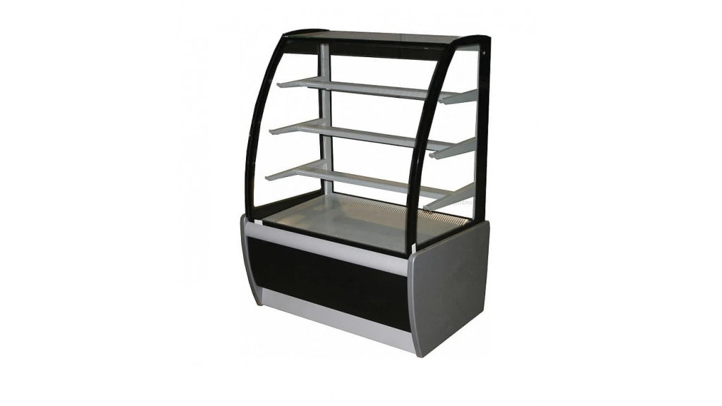920 × 650 × 1280 мм; витрина кондитерская, (+6 … +12 С), со встроенным агрегатом, гнутое стекло, 3 стеклянные полки с подсветкой LED цвет тепло белый, полезный объём: 0,18 м³; размер выкладки - 860 × 440, 3 полки: 858 х 300 мм