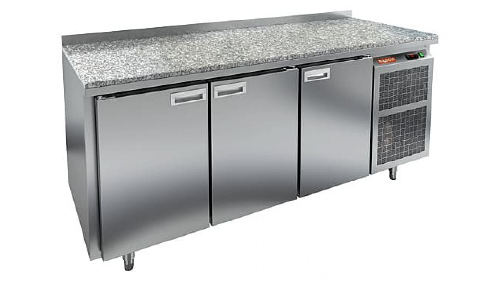 Температурный режим: -2 ... +10 C°; три двери; боковое расположение агрегата; возможность использования гастроемкостей вместо полок; динамическое охлаждение; 220 В; 0,46 кВт; 1835 × 700 × 850 мм; 505 л; 195 кг.