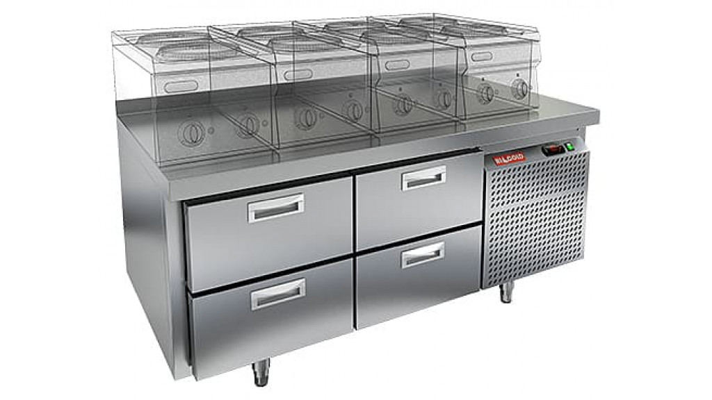 Температурный режим: -2 ... +10 C°; четыре выдвижных ящика; боковое расположение агрегата; возможность использования гастроемкостей вместо полок; динамическое охлаждение; 220 В; 0,22 кВт; 1390 × 700 × 675 мм; 255 л; 109 кг.