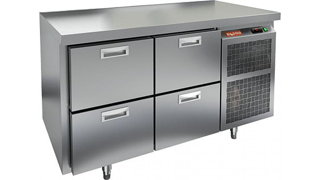 Температурный режим: -2...+10 C°; четыре выдвижных ящика; боковое расположение агрегата; возможность использования гастроемкости вместо полок; динамическое охлаждение; 220 В; 0,22 кВт; 1390 × 700 × 850 мм; 350 л; 95 кг.