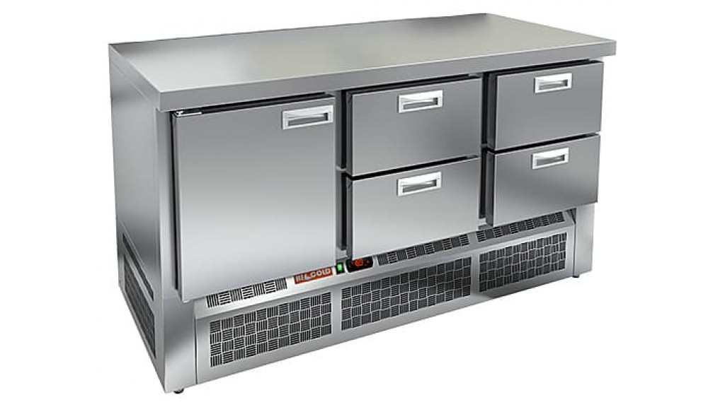Устройство оснащено мощной и энергоэффективной системой охлаждения, которая поддерживает стабильную низкую температуру, гарантируя долговечность и сохранность продуктов. Этот стол идеально подходит для интенсивной работы на профессиональных кухнях, сочетая практичность, надёжность и высокую производительность.