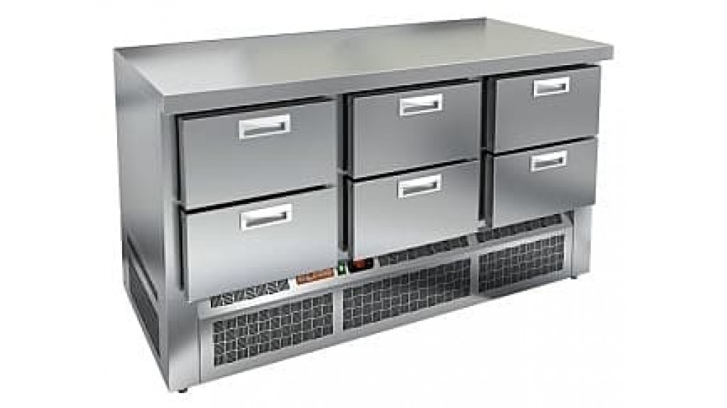 Температурный режим: -2…-+10 C°; шесть выдвижных ящиков; нижнее расположение агрегата; возможность использования гастроемкости вместо полок; динамическое охлаждение; 220 В; 0,15 кВт; 1485 × 700 × 850 мм; 245 л; 115 кг.